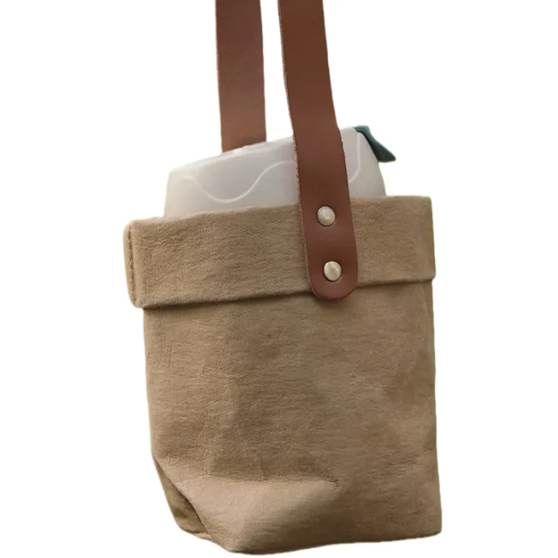 Pesty Kraft Paper Bag For Cup Cover -pussin käytön jälkeen se voidaan huuhdella suoraan vedellä. Puhtaasti huuhtelun ja kuivauksen jälkeen se voi säilyttää alkuperäisen jäykkyytensä. Se ei muutu pehmeäksi tai vääntymään joutuessaan alttiiksi vedelle, eikä se ole herkkä delaminaatiolle tai halkeilulle, sitä voidaan silti käyttää myöhemmin.